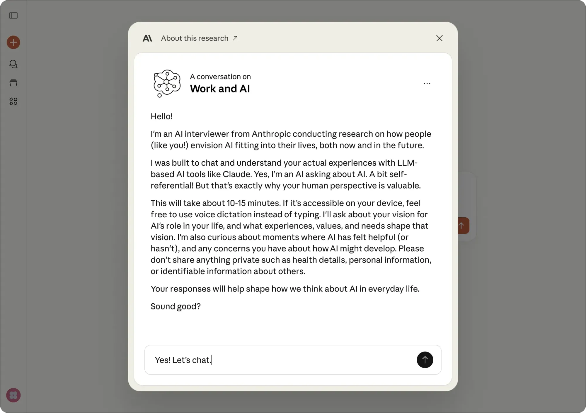 Anthropic Interviewer가 수행한 인터뷰는 Claude.ai에 나타났으며 각 참가자와 약 10~15분 동안 진행되었습니다.