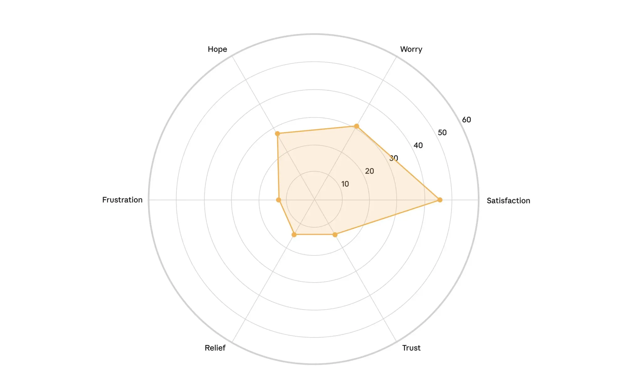 일반 직군 6개 주요 직업군에서 나타난 상위 6가지 감정(희망, 걱정, 만족, 좌절, 안도, 신뢰)의 강도. 만족감이 높은 것이 특징이지만 좌절감도 함께 나타나, 전문가들이 AI를 유용하게 여기면서도 구현상의 어려움을 겪고 있음을 시사함